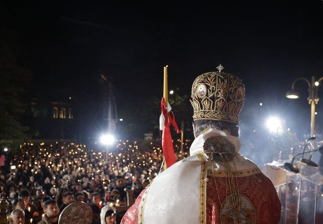 Besimtarët kanë ndezur qirinj në “Katedralen Ortodokse Ngjallja e Krishtit” për të çuar në shtëpi dritë nga drita e Jezukrishtit i cili tanimë u ngjall vërtetë.