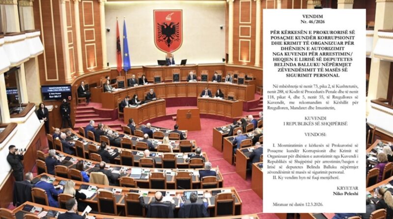 Kuvendi rrëzoi kërkesën e SPAK për dhënien e autorizimit për arrestimin e Ballukut, vendimi publikohet në Fletoren Zyrtare