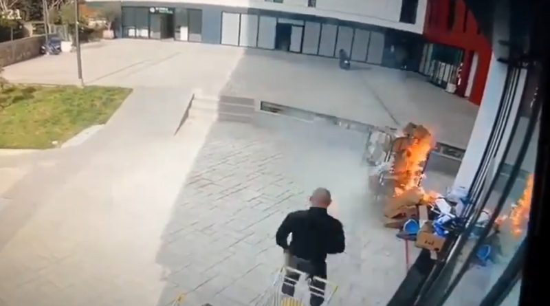 Ndërkohë, befasues është fakti se si një qytetar që ka kaluar aty pranë zjarrit, nuk ka reaguar fare, por ka vijuar rrugën e tij. Zjarri më pas përfshin fasadën e objektit, duke shkrumbuar rreth 30 banesa.