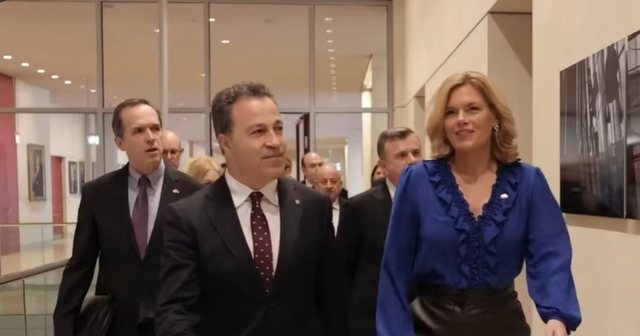 Bie në sy se pjesë e delegacionit zyrtar që shoqëron Niko Peleshin në Bundestagun gjerman janë dhe deputetët opozitar Redi Muçi nga partia Lëvizja Bashkë dhe Edmond Haxhinasto, nga Partia e Lirisë.